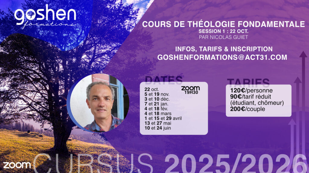 Goshen Formations est un centre de formations rattaché à l’Assemblée Chrétienne de Toulouse et au réseau apostolique Nouvelles Connexions Ariel.